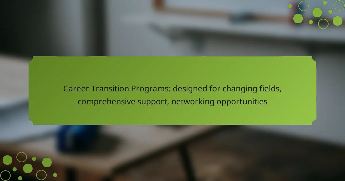 Career transition programs provide essential support for individuals looking to change fields by offering tailored resources, skills training, and networking opportunities. These programs are designed to facilitate a smooth shift into new industries, ensuring participants have the tools and connections needed for success.